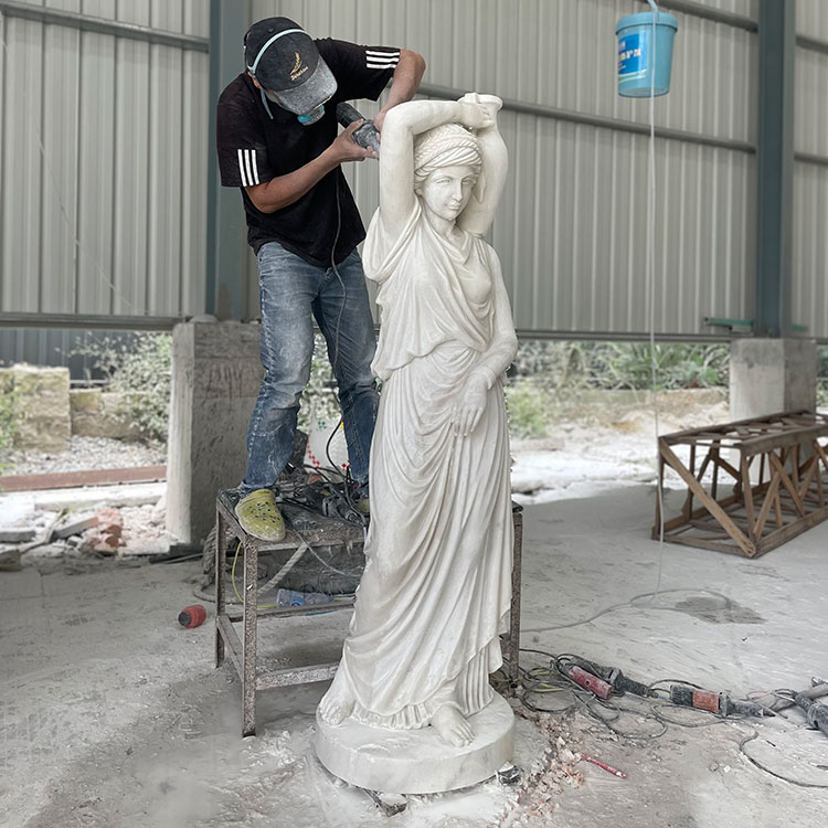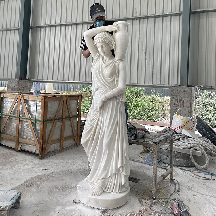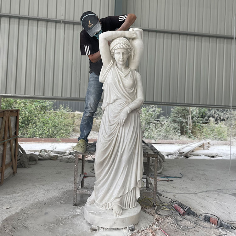 Marmorfigurskulptur refererer til skulpturen av menneskelige figurer skåret ut av marmor. Marmor er egnet for å lage komplekse mennesker og dyreskulpturer på grunn av sin myke tekstur og enkle utskjæring. Den hvite fargen på marmor, spesielt den øverste marmoren som Carrara White Marble, er hvit og delikat, med en gjennomskinnelig overflate. De utskårne figurene er naturlige og ekte, til og med sammenlignbare med ekte hud. Marmor er motstandsdyktig mot forvitring, syre og alkali, og har en høy håndverksvurderingsverdi.