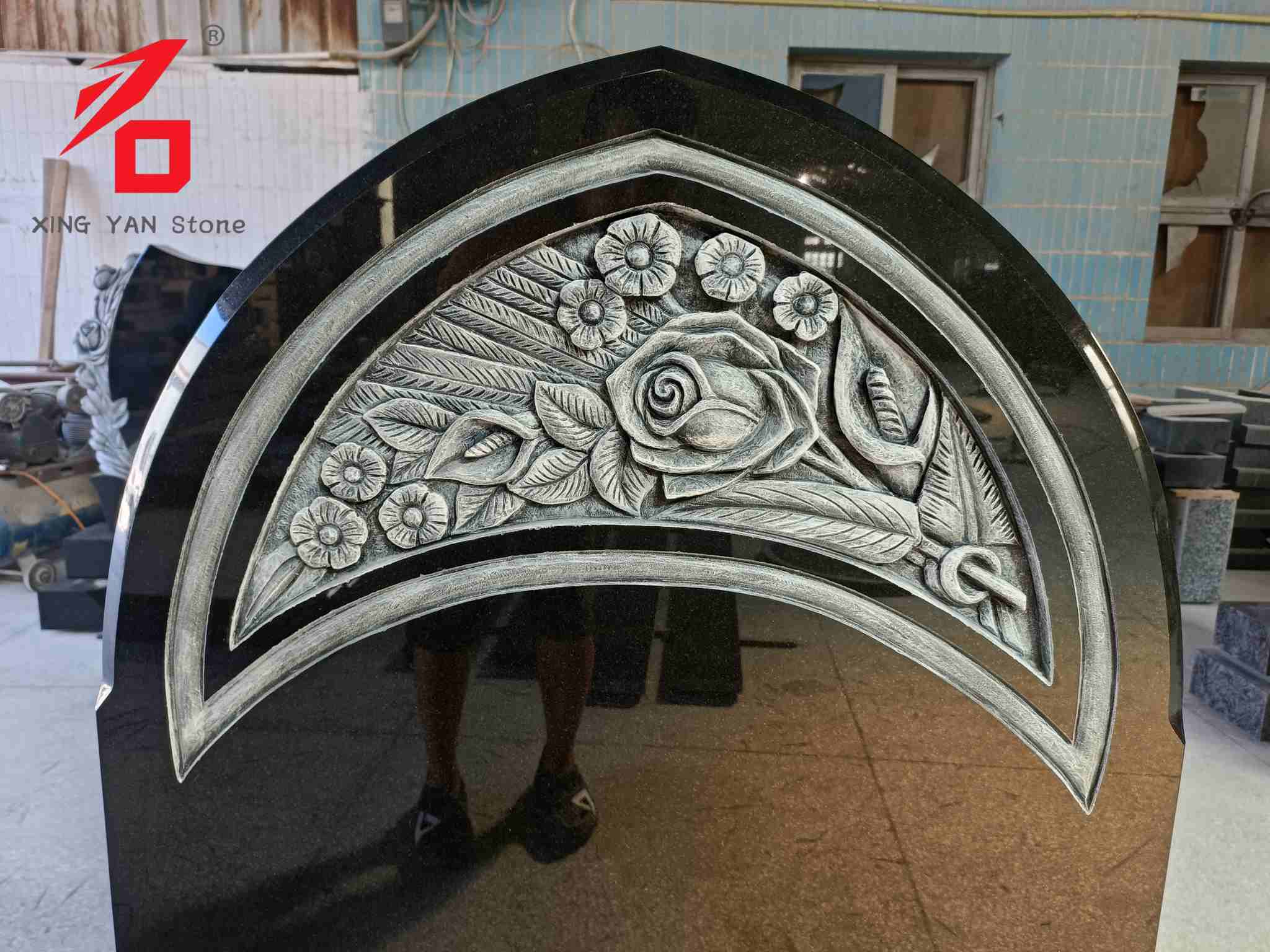 Størrelsestilpasning: Standard høyde 1,5-2,0 meter (justerbar på forespørsel), bredde 0,8-1,0 meter, tykkelse 8-10 cm; støtter gravering av avdødes navn, fødsels- og dødsdatoer, minnetekst og personlige mønstre.