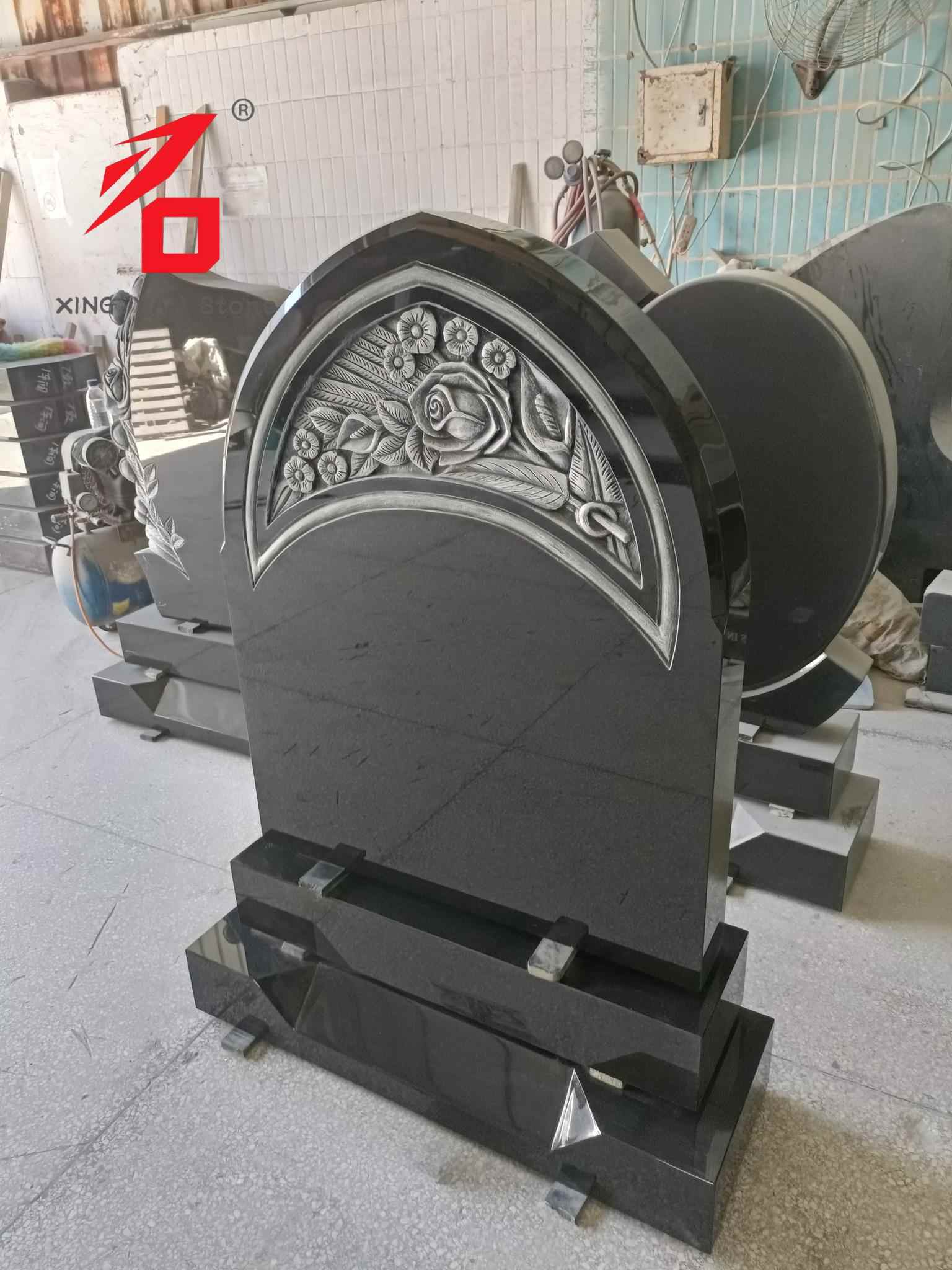 Designstil: Den buede formen sammen med roserelieffelementer formidler en minnesmerke som kombinerer mildhet og høytidelighet, egnet for å uttrykke dyp erindring om den avdøde.