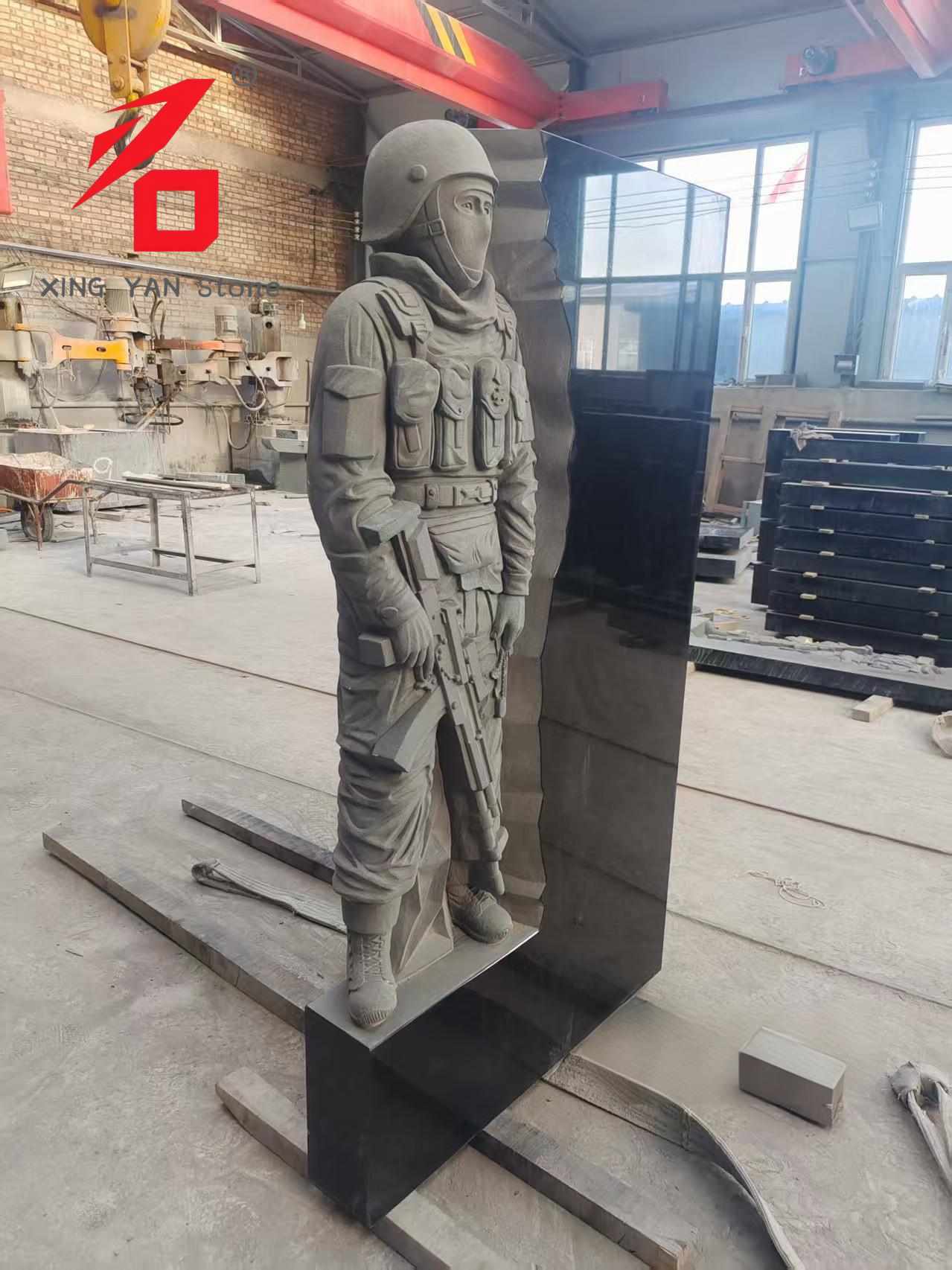 Materiale: Svart granitt med høy hardhet (f.eks. indisk sort granitt), finpolert for en glatt, blank overflate, værbestandig og korrosjonsbestandig, egnet for langtidsvisning utendørs;